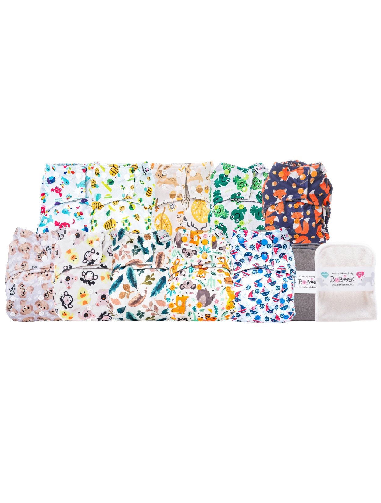 Bobánek Akční sada AIO plenek 10 kusů + 7x vkládací pleny + 1x separační pleny (1AS10)