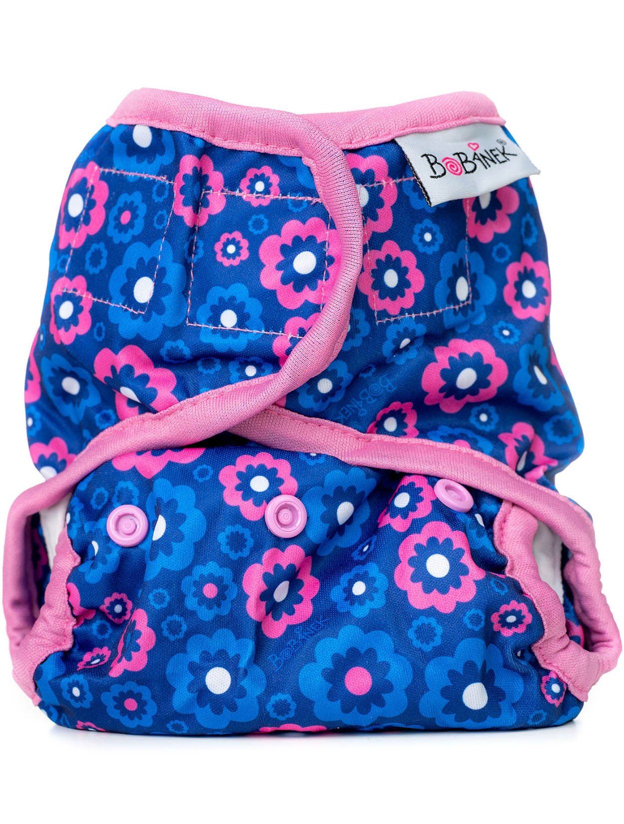 Bobánek diaper covers are made of 100% polyester with a polyurethane coating, making them waterproof while still breathable. The covers are equipped with snaps for easy size adjustment. They fit babies from approximately 5 kg up to toddler size. They are suitable for all types of diapers, such as prefolds, multi-layer diapers, and fitted diapers.