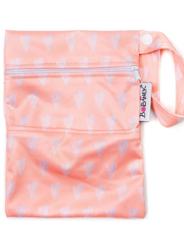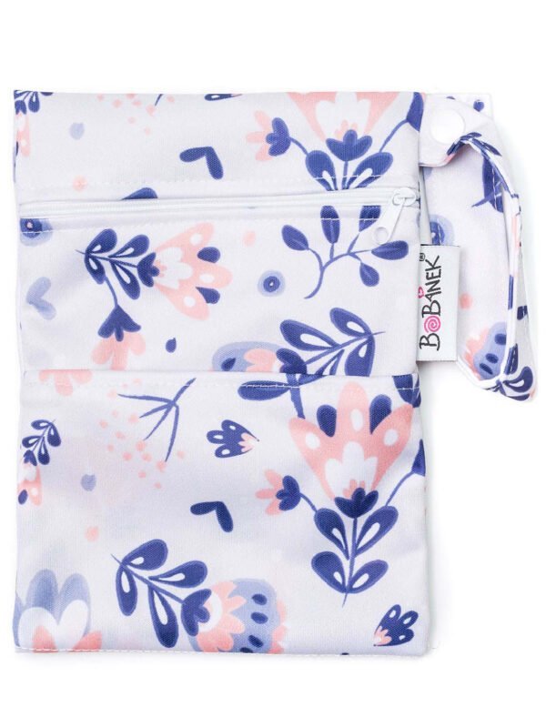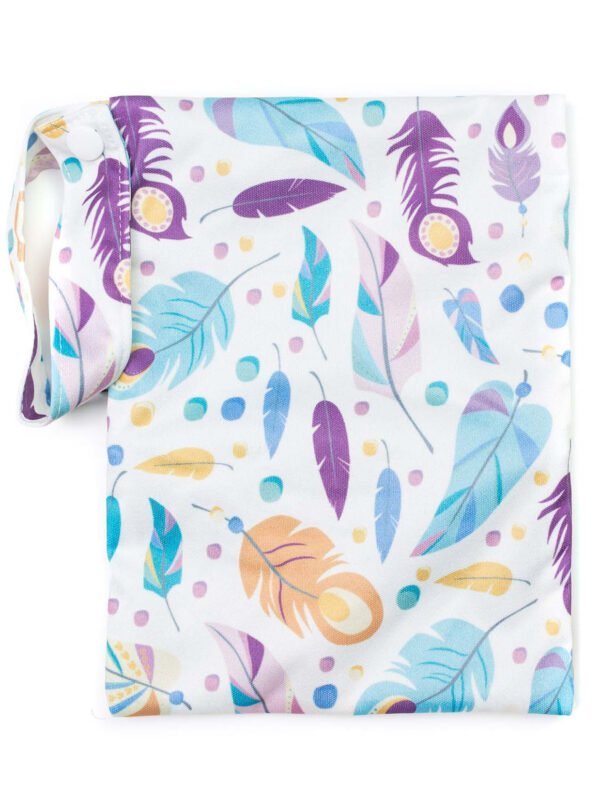 Mini nepremokavé taštičky, vhodné na malé veci ako sú šminky, látkové vložky, šperky a pod. Majú pútko a 2 kapsičky (väčšie a menšie). Táto taštička sa hodí pre každú mamičku.