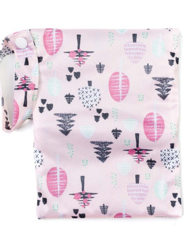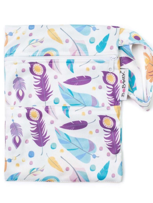Nepremokavá taštička s pútkom na látkové vložky s 2 kapsičkami (väčšie a menšie). Má ale aj množstvo ďalších využití napr. na látkové dojčiace vložky, kozmetiku, papierové vreckovky alebo na drobnosti do kabelky. Rozmer: 20x15 cm