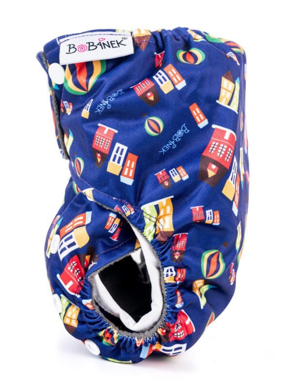 Vrchniačky Bobánek sú vyrobené zo 100% polyesteru s polyuretánovým záterom sú nepriepustné, ale napriek tomu priedušné. Nohavičky sú opatrené patentkami pre ľahkú úpravu veľkosti. Sedí dieťaťu zhruba od 10 kg do 24 kg. Vhodné kombinovať s vkladacími plienkami Bobánek XL, ktoré dovnútra perfektne sadnú.