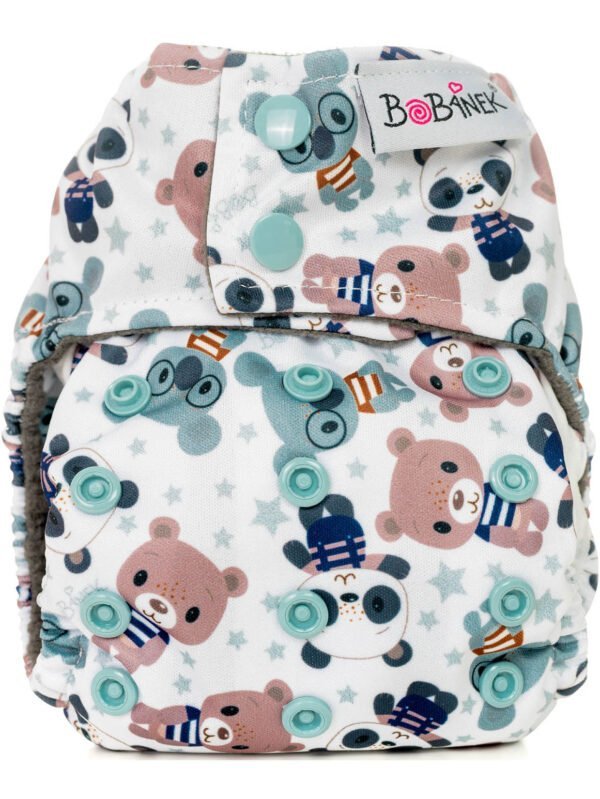 Novorodenecká abdukčná plienka Bobánek typu AIO je ideálny pre novorodencov vďaka svojmu savému jadru, krídelkám z PUL materiálu, ktoré bránia pretekaniu a extra vrecku na vloženie vkladacej plienky. Veľkosť plienky je možné nastaviť pomocou patentiek, vonkajšia strana je z vodeodolného a priedušného materiálu PUL a vnútorná strana z tmavého fleecu. Plienka sa odporúča prať bez aviváže a používať v kombinácii s bambusovými separačnými plienkami na zachytenie nečistôt.