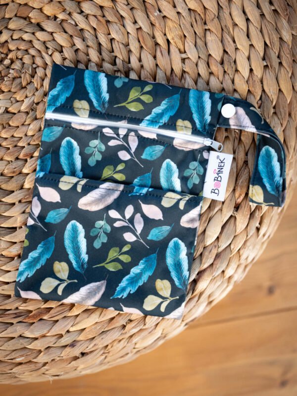 Nepremokavá taštička s pútkom na látkové vložky s 2 kapsičkami (väčšie a menšie). Má ale aj množstvo ďalších využití napr. na látkové dojčiace vložky, kozmetiku, papierové vreckovky alebo na drobnosti do kabelky. Rozmer: 20x15 cm